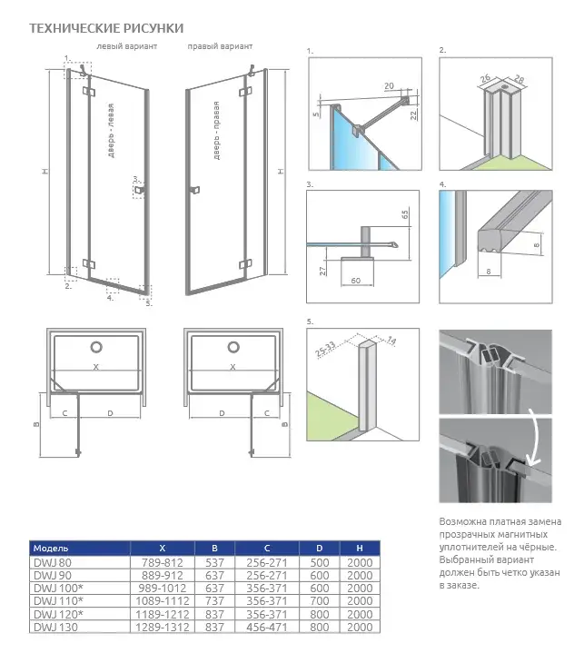 Radaway Essenza 8 DWJ Боковая стенка, прозрачная 8 мм, Easy Clean 33,7х200h см, цвет: black 10460337-54-01L