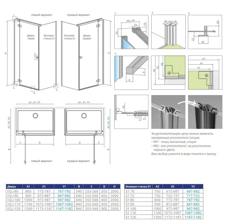 Radaway Esseza New KDJ Боковая стенка 100х200h, стекло прозрачное 6мм с покрытием EasyClean, профиль 384052-01-01