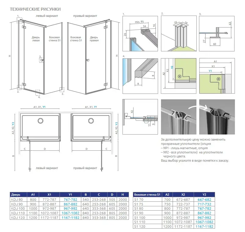 Radaway Esseza New KDJ Боковая стенка 100х200h, стекло прозрачное 6мм с покрытием EasyClean, профиль 384052-01-01