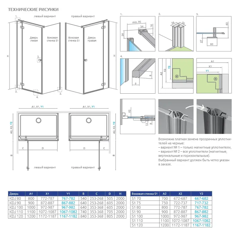 Radaway Esseza New KDJ Боковая стенка 100х200h, стекло прозрачное 6мм с покрытием EasyClean, профиль 384052-01-01