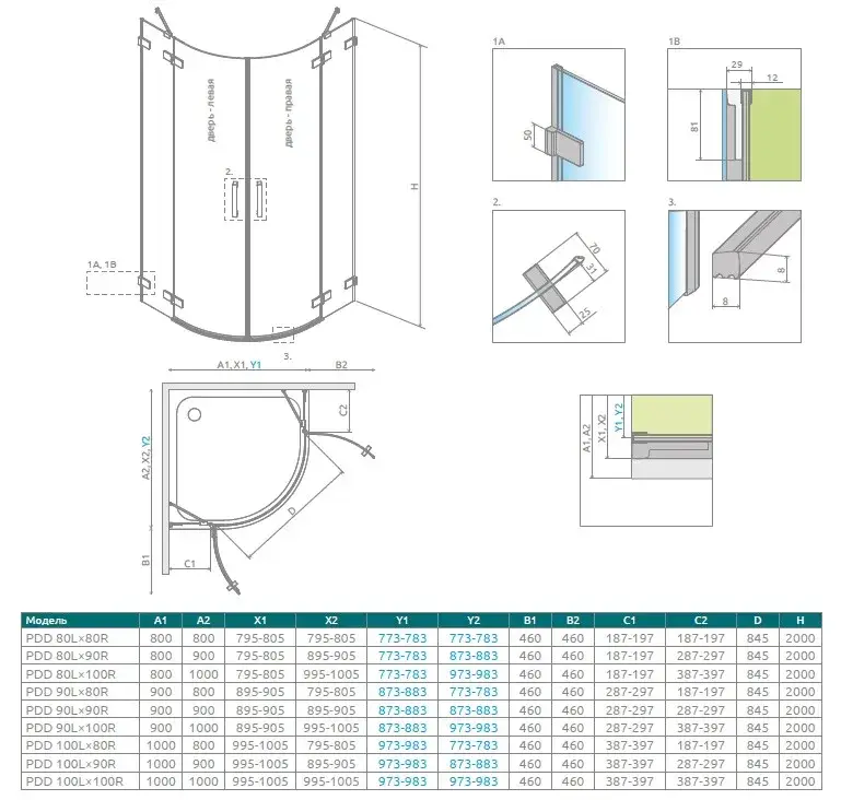 Radaway Euphoria PDD Душевая дверь, правая, прозрачная 8 мм, 100х200h см, цвет: хром глянцевый 383003-01R