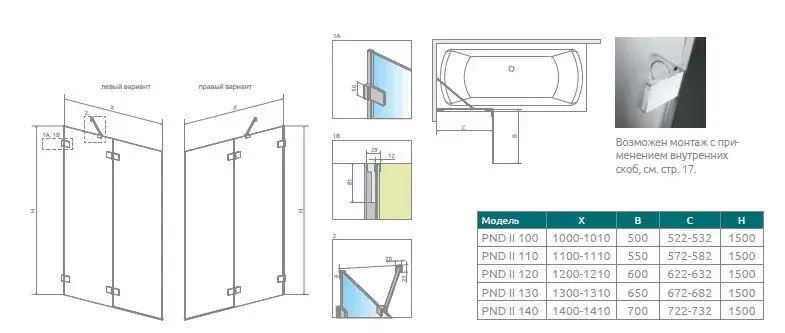 Radaway Euphoria PND II Шторка на ванну распашная 8 мм, Easy Clean 110х150h см, цвет: хром глянец 10008110-01-01L
