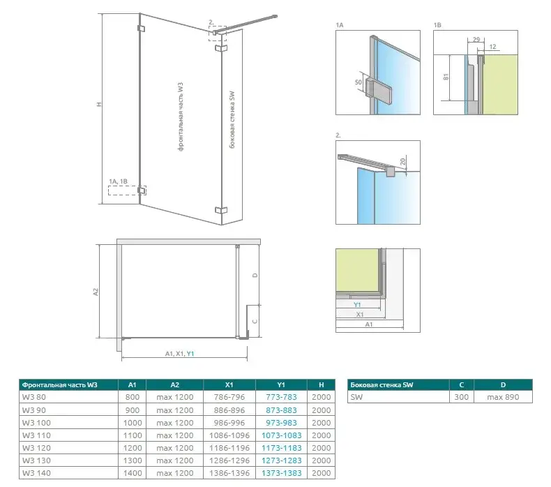 Radaway Euphoria Walk In SW Боковая стенка, прозрачная, Easy Clean 30х200h см, цвет: хром глянец 383160-01-01