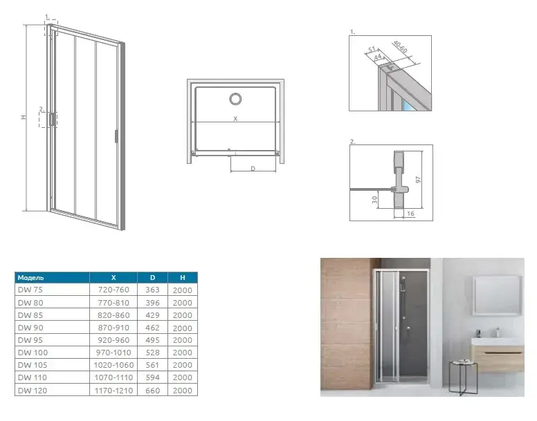 Radaway Evo DW Душевая дверь в нишу прозрачная 4 мм, Easy Clean 120х200h см, цвет: хром глянцевый 335120-01-01
