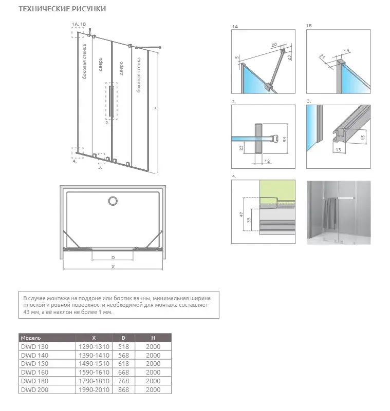 Radaway Furo DWD Душевая дверь, прозрачная 8 мм, Easy Clean 48,8х200h см, цвет: хром глянцевый 10108488-01-01