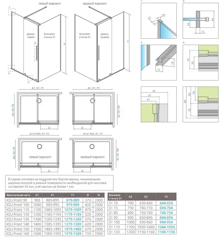 Radaway Furo KDJ Боковая стенка, прозрачная 8 мм, Easy Clean 110х200h см 10113110-01-01
