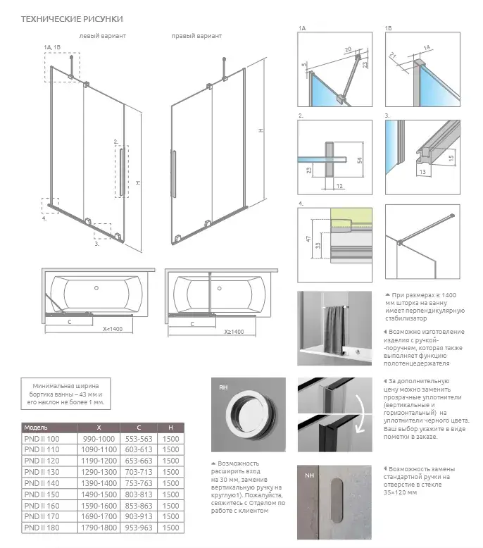 Radaway Furo PND II Шторка на ванну раздвижная, прозрачная 8 мм, 68,8х150h см, цвет: хром глянцевый 10109688-01-01L