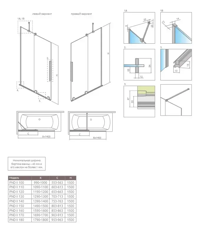 Radaway Furo PND II Шторка на ванну раздвижная, прозрачная 8 мм, 53,8х150h см, цвет: хром глянцевый 10109538-01-01L