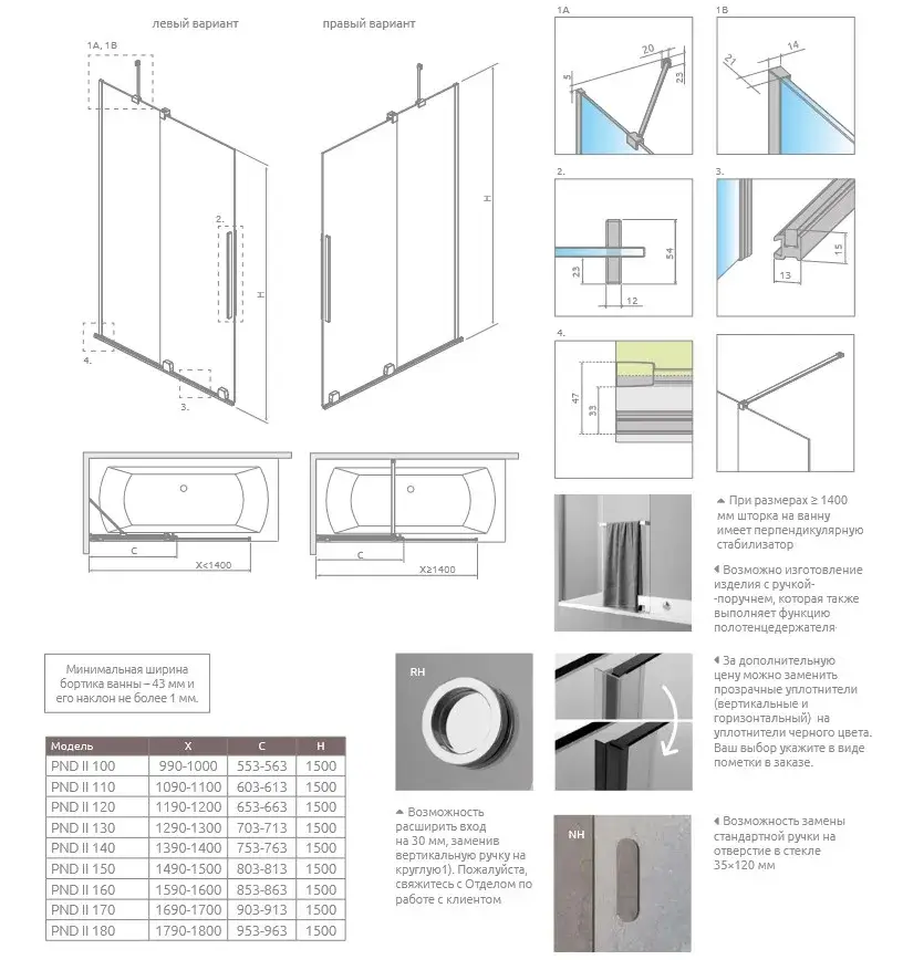 Radaway Furo PND II Шторка на ванну раздвижная, прозрачная 8 мм, 53,8х150h см, цвет: хром глянцевый 10109538-01-01L
