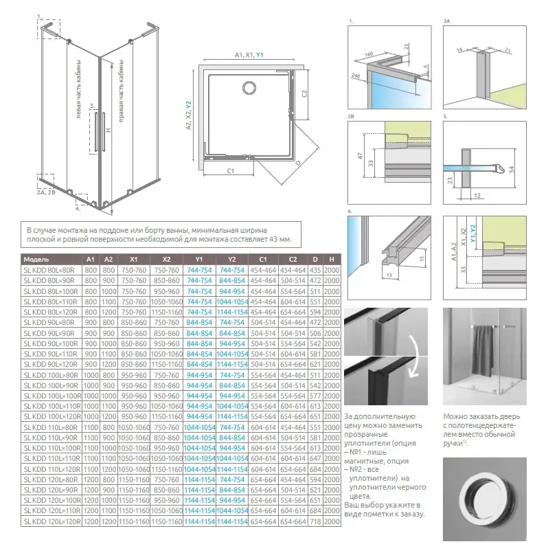Radaway Furo SL KDD Душевая дверь, левая, прозрачная 8 мм, Easy Clean 100х200h см, цвет: gold 10305100-09-01L