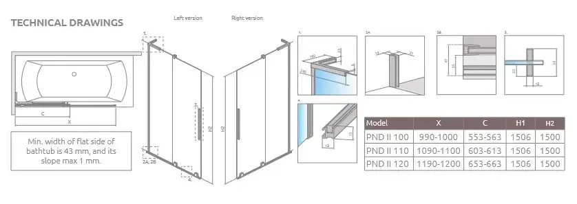 Radaway Furo SL PND II Шторка на ванну раздвижная, Easy Clean 63,8х150h см, цвет: brushed nickel 10309638-91-01L