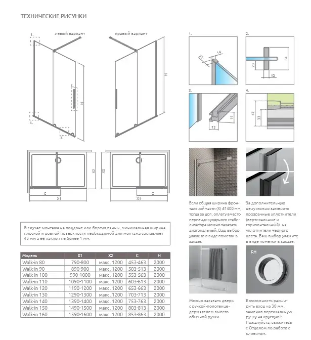 Radaway Furo Wall PN Фронтальная стенка, прозрачная 8 мм, Easy Clean 64,4х200h см 10110644-01-01