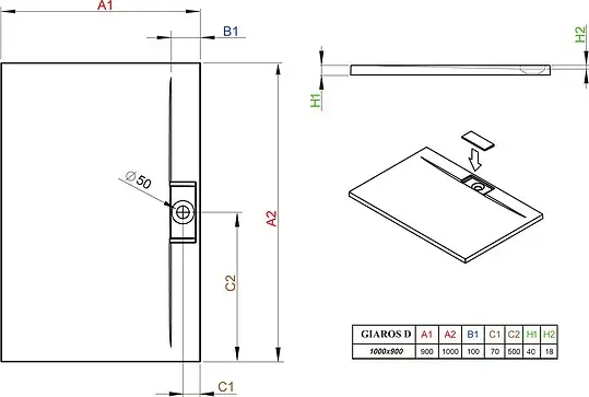 Radaway Giaros D Душевой поддон из акрила, 100х80х4h см, цвет: белый глянцевый MKGD1080-03