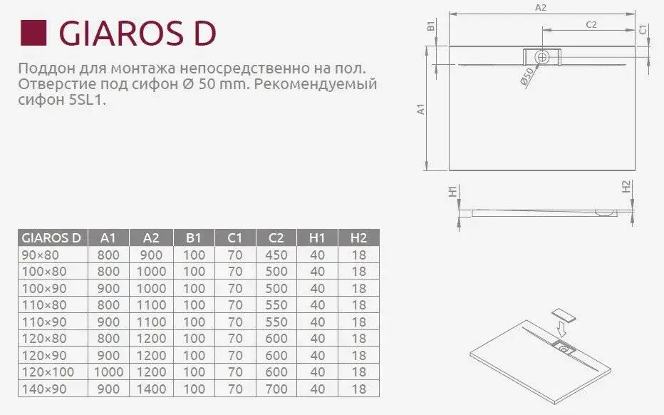 Radaway Giaros D Поддон для душа из композита, 90х80х4h см с крышкой слива, цвет: белый глянцевый M3GRD9080
