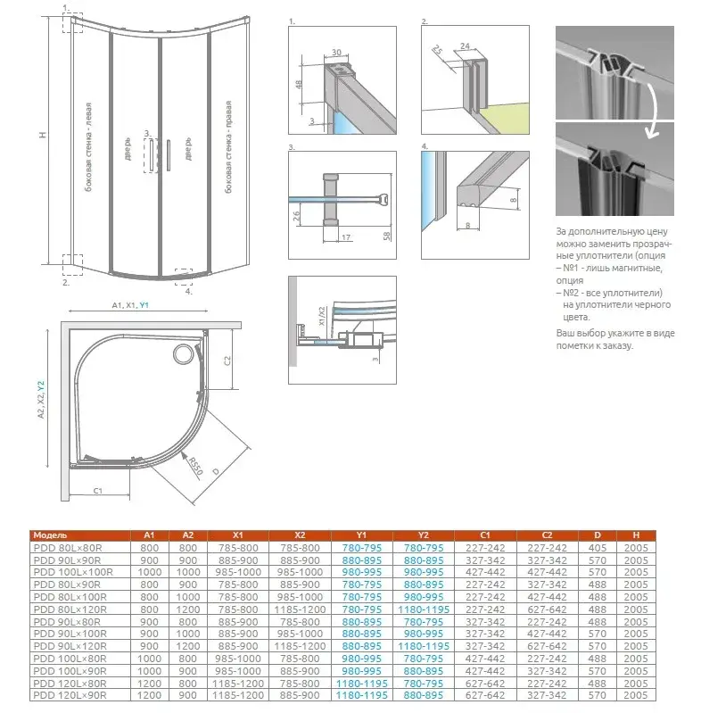 Radaway Idea PDD Боковая стенка, прозрачная 6 мм, Easy Clean 80х200,5h см, цвет: хром глянцевый 387141-01-01