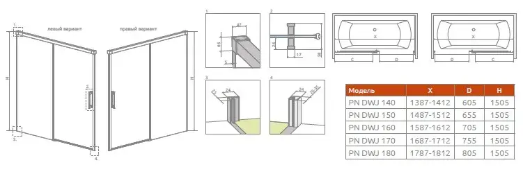 Radaway Idea PN DWJ Шторка на ванну раздвижная 6 мм, Easy Clean 180х150h см, цвет: хром глянец 10003180-01-01R