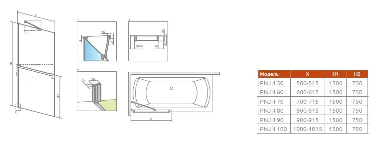 Radaway Idea PNJ II Шторка на ванну, Frame 6 мм, Easy Clean 50х150h см, цвет: black 10001050-54-56