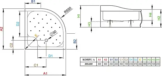 Radaway Korfu A Душевой поддон из акрила, 80х80х48h см, цвет: белый глянцевый 4S88400-03