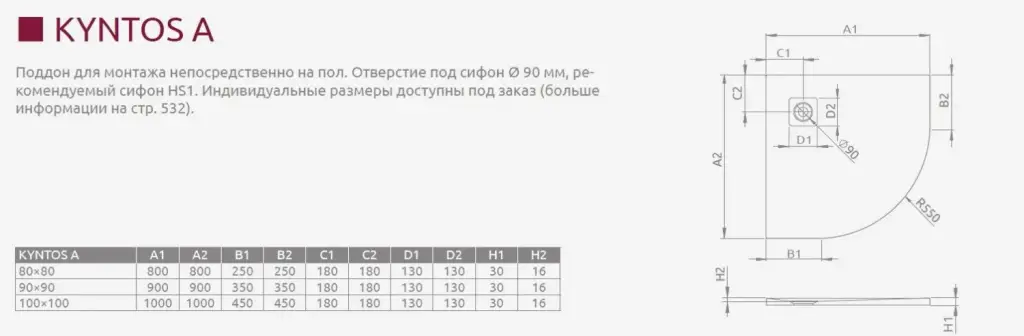 Radaway Kyntos PT Поддон для душа из композита, 90х90х3h см под решетку, цвет: black HKPT9090-54