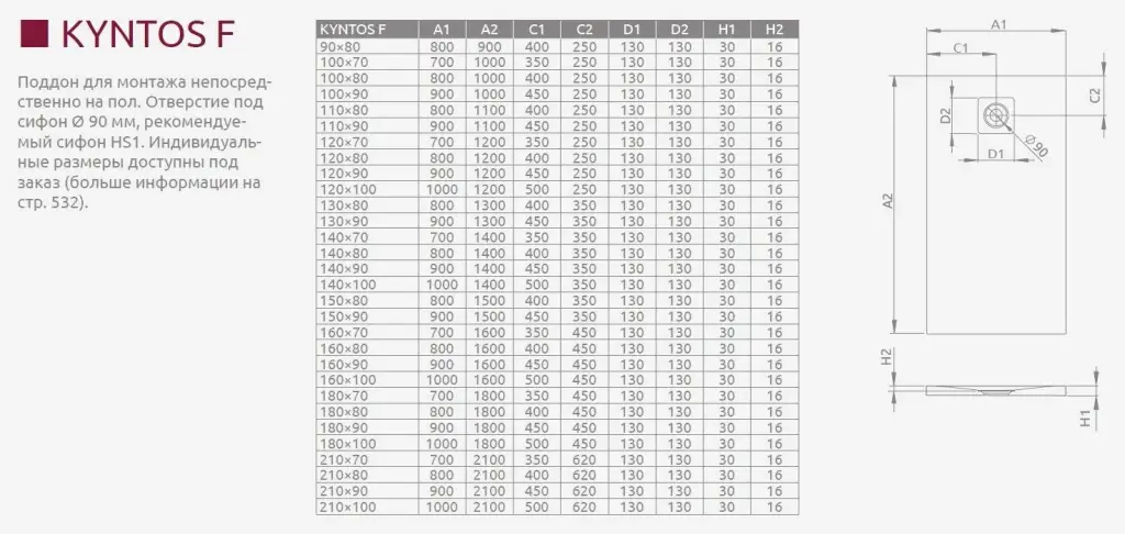 Radaway Kyntos F Поддон для душа из композита, 210х90х3h см под решетку, цвет: white HKF21090-04