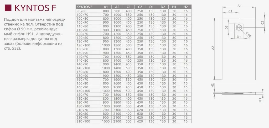 Radaway Kyntos F Поддон для душа из композита, 210х90х3h см под решетку, цвет: white HKF21090-04