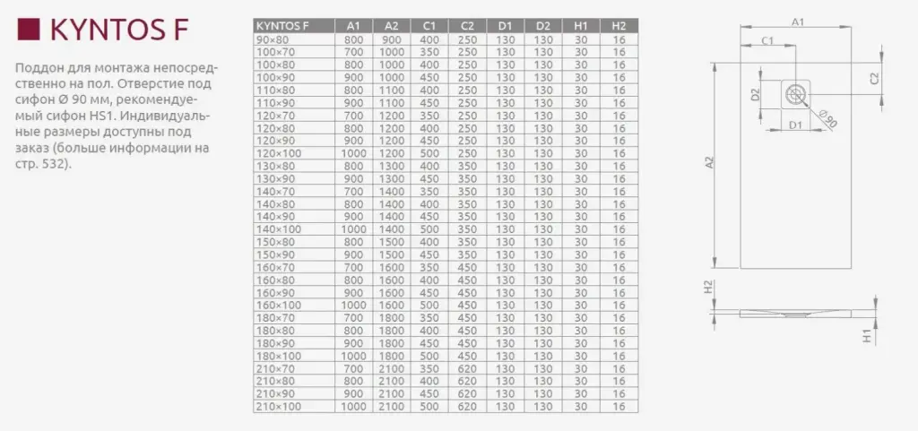 Radaway Kyntos F Поддон для душа из композита, 210х90х3h см под решетку, цвет: white HKF21090-04