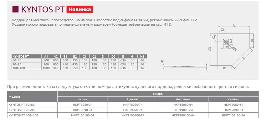 Radaway Kyntos PT Поддон для душа из композита, 90х90х3h см под решетку, цвет: black HKPT9090-54
