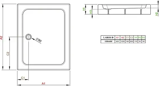 Radaway Laros D Душевой поддон из акрила, 120х90х17h см, цвет: белый глянцевый SLD91217-01