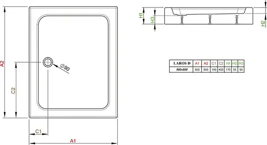 Radaway Laros D Душевой поддон из акрила, 90х80х17h см, цвет: белый глянцевый SLD8917-01