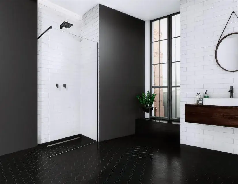Radaway Modo New II Душевое ограждение walk-in, прозрачное 8 мм, Easy Clean 80х200h см, цвет: black 389084-54-01