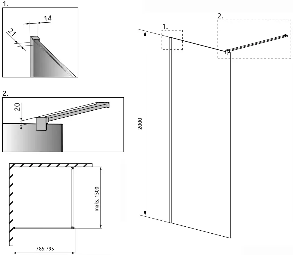 Radaway Modo New II Душевое ограждение walk-in, прозрачное 8 мм, 140х200h см, цвет: хром глянцевый 389905-01-01