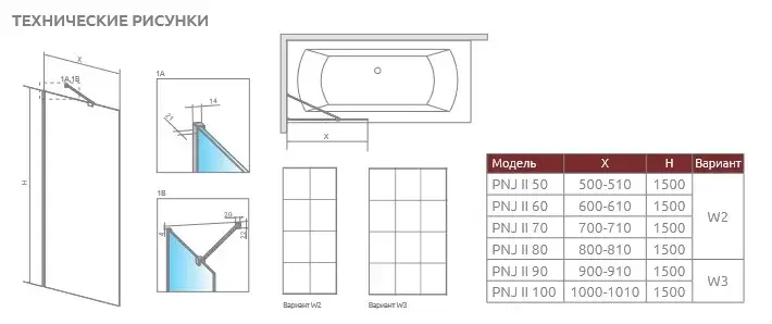 Radaway Modo New PNJ II Шторка на ванну, прозрачная 8 мм, Easy Clean 90х150h см, цвет: white 10006090-04-01