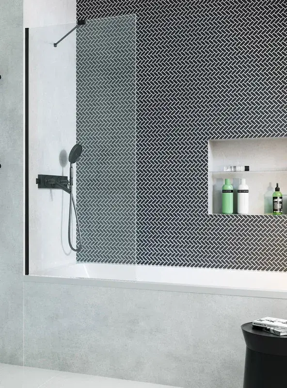 Radaway Modo PNJ II Шторка на ванну, прозрачная 8 мм, Easy Clean 90х150h см, цвет: black 10006090-54-01