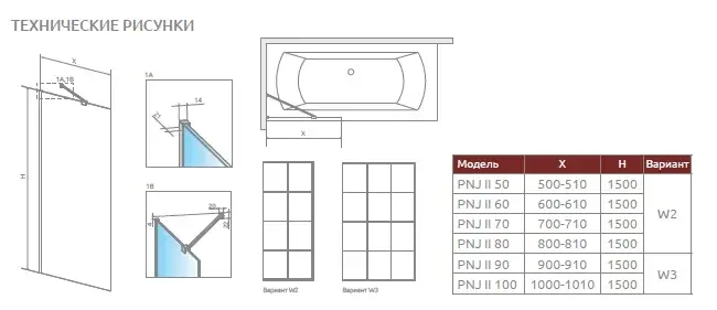 Radaway Modo PNJ II Шторка на ванну, прозрачная 8 мм, Easy Clean 90х150h см, цвет: хром глянцевый 10006090-01-01