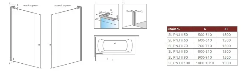 Radaway Modo SL PNJ II Шторка на ванну, прозрачная 8 мм, Easy Clean 60х150h см, цвет: хром глянцевый 10316060-01-01R
