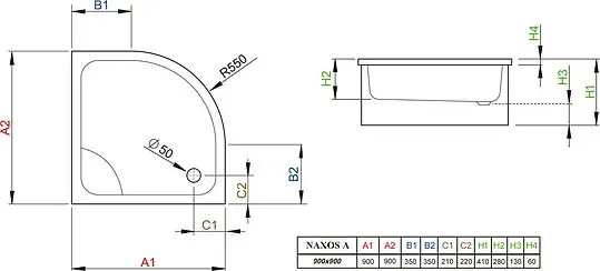 Radaway Naxos A Душевой поддон из акрила, 90х90х41h см, цвет: белый глянцевый SBA9941-1