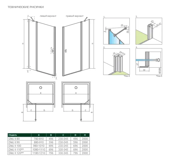 Radaway Nes 8 DWJ II Душевая дверь в нишу, левая 8 мм, Easy Clean 110х200h см, цвет: хром глянец 10083110-01-01L