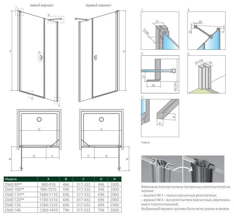 Radaway Nes 8 DWS I Душевая дверь, левая, прозрачная 8 мм, 59,1х200h см, цвет: хром глянцевый 10078100-01-01L