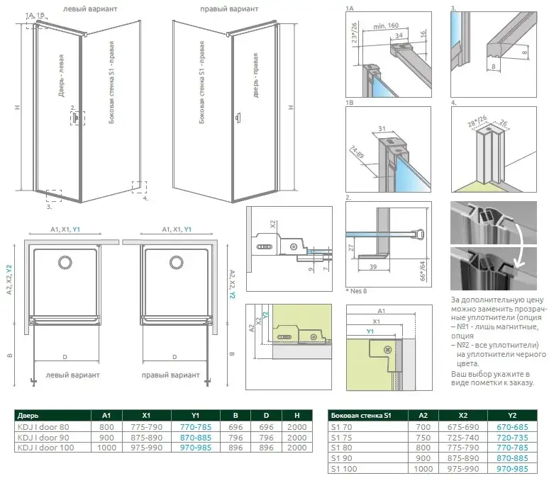 Radaway Nes 8 KDJ I Боковая стенка, frame 8 мм, Easy Clean 90х200h см, цвет: black 10089090-54-56