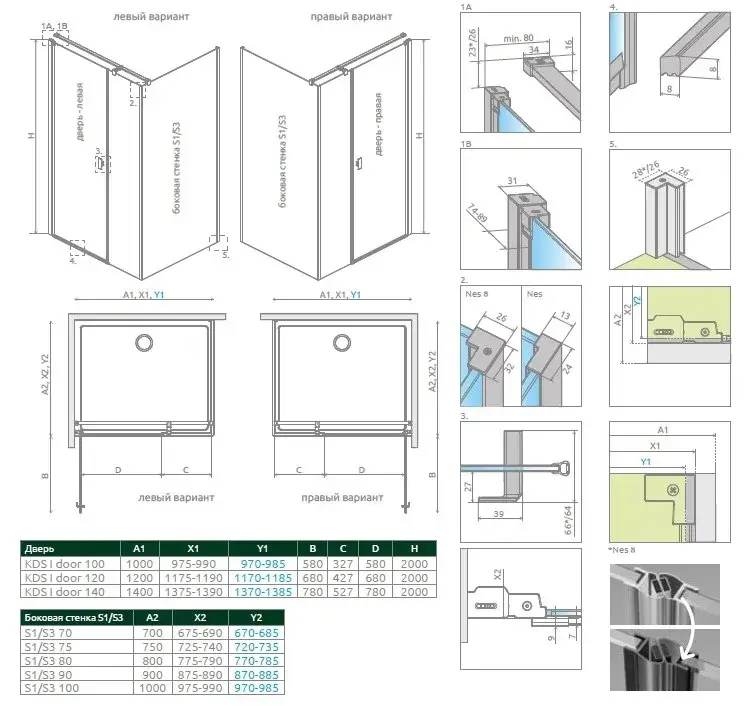 Radaway Nes 8 KDS I Душевая дверь, левая, прозрачная 8 мм, Easy Clean 57,5х200h см, цвет: black 10073100-54-01L