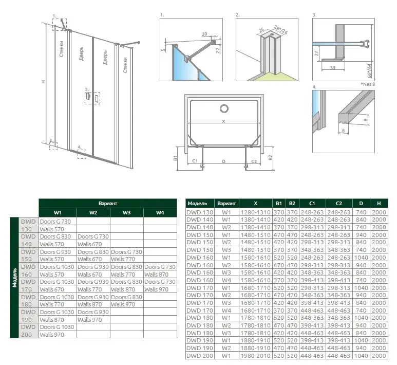 Radaway Nes DWD II Фронтальная стенка, прозрачная 6 мм, Easy Clean 67х200h см, цвет: brushed gold 10041067-99-01