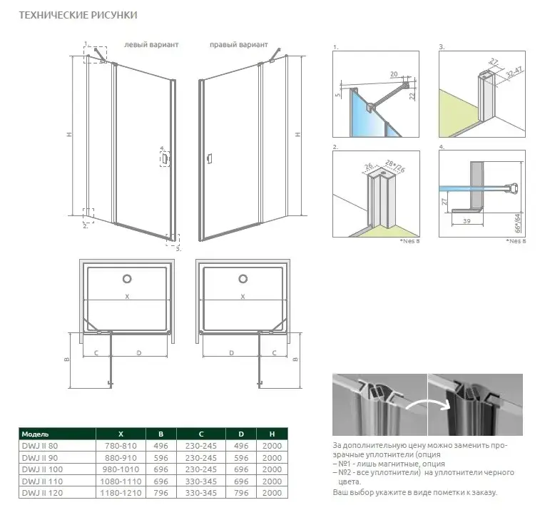 Radaway Nes DWJ II Душевая дверь в нишу, левая, прозрачная 6 мм, 100х200h см, цвет: хром глянцевый 10036100-01-01L