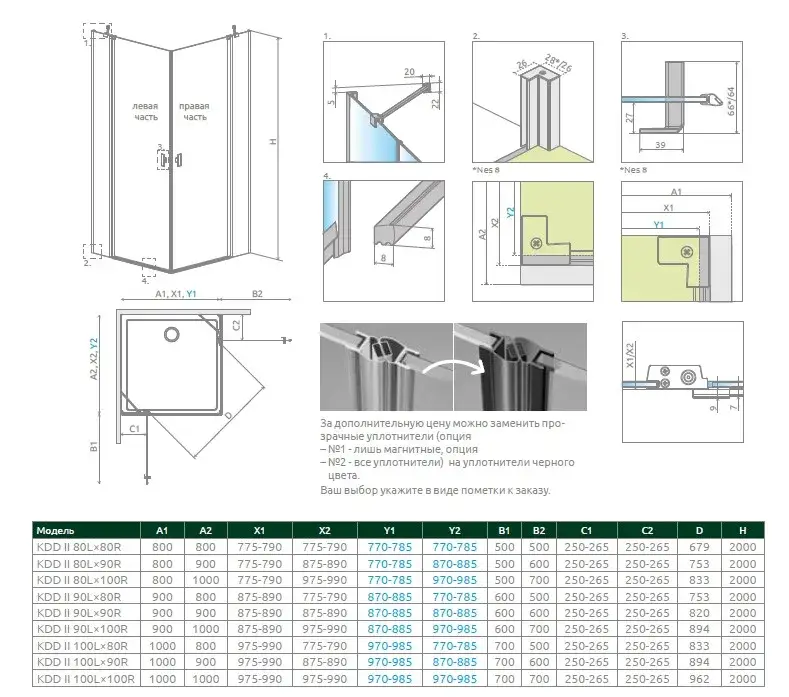 Radaway NES KDD II Душевая дверь, правая, прозрачная 6 мм, Easy Clean 100х200h см, цвет: black 10031100-54-01R
