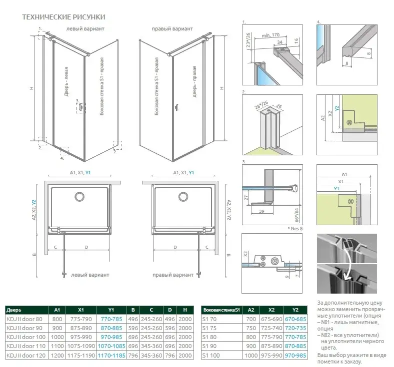 Radaway Nes KDJ II Душевая дверь, левая, прозрачная 6 мм, Easy Clean 110х200h см, цвет: black 10032110-54-01L