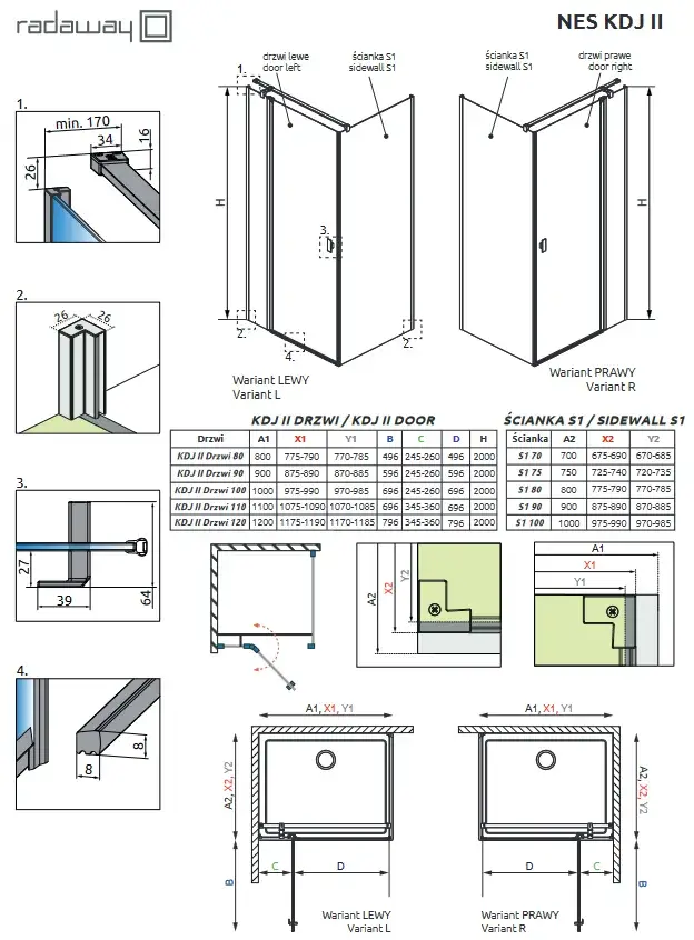 Radaway Nes KDJ II Душевая дверь, левая, прозрачная 6 мм, Easy Clean 90х200h см, цвет: black 10032090-54-01L