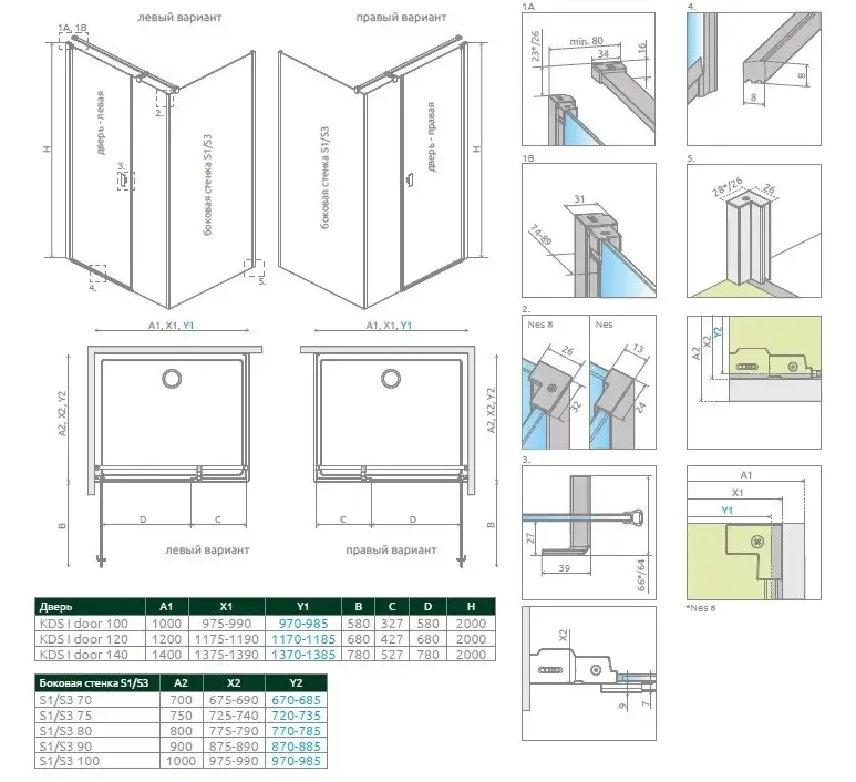 Radaway NES KDS I Боковая стенка, прозрачная 6 мм, Easy Clean 80х200h см, цвет: black 10043080-54-01