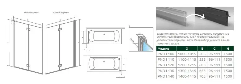 Radaway Nes PND I Шторка на ванну складная, прозрачная 6 мм, 130х150h см, цвет: хром глянцевый 10010130-01-01L