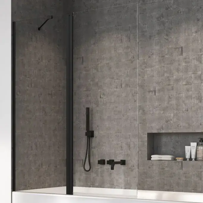 Radaway Nes PND II Шторка на ванну распашная, прозрачная 6 мм, Easy Clean 100х150h см, цвет: black 10009100-54-01L