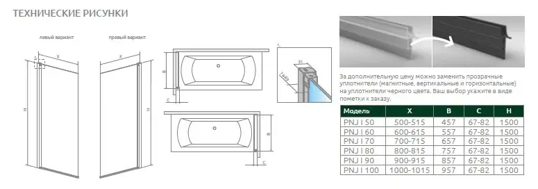 Radaway Nes PNJ I Шторка на ванну распашная, прозрачная 6 мм, 100х150h см, цвет: хром глянцевый 10011100-01-01R
