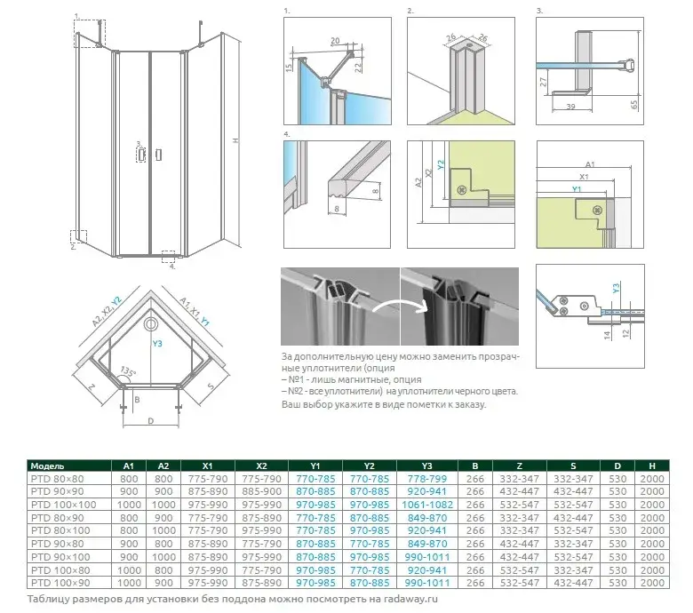Radaway NES PTD Боковая стенка, прозрачная 6 мм, Easy Clean 100;90х200h см, цвет: хром глянцевый 10051500-01-01